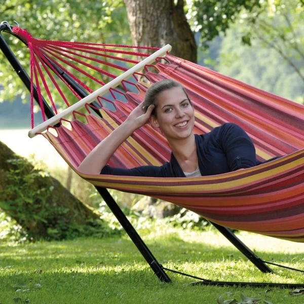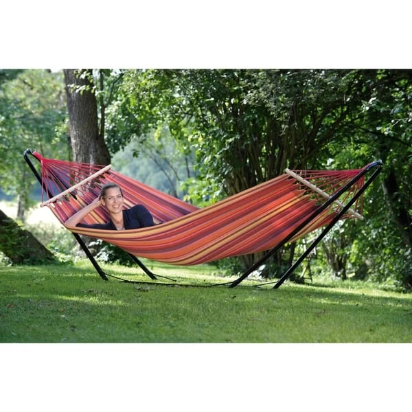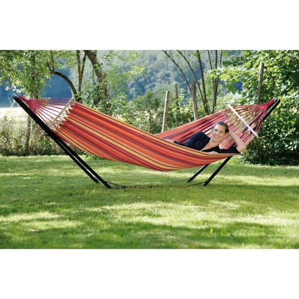 Das Amazonas Beach Set ist ein besonders beliebtes Hängematten-Set. Das pulverbeschichtete schwarze Gestell und die wetterfeste, UV-beständige EllTex-Hängematte (Extra Long Lasting TEXtile) in der beliebten Farbe Vulcano ist eine tolle Kombination. Dank Klick-Verschlüssen einfach aufzubauen und über den Winter platzsparend zu verstauenArt.-Nr.: 1398388