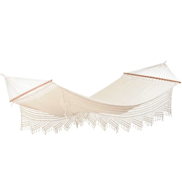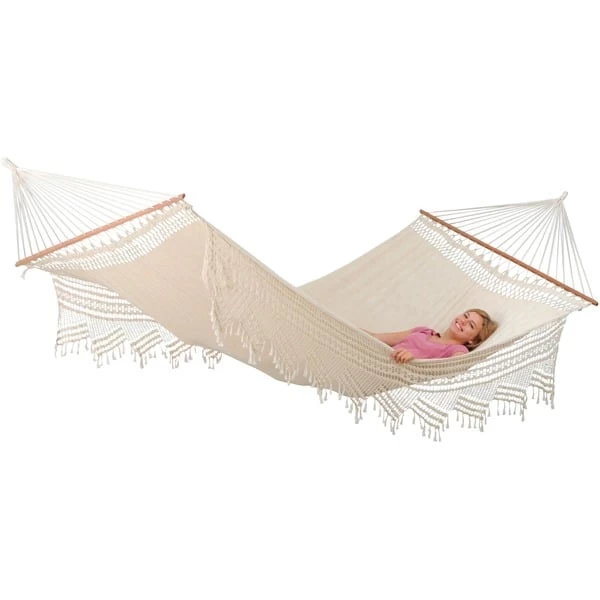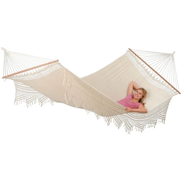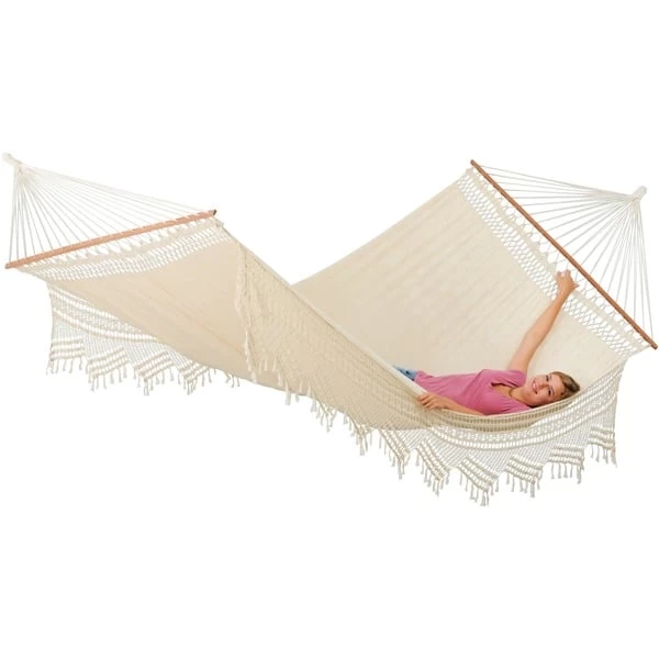 Hängematten, groß wie französische Betten! Zur perfekten Optik & Stabilität werden Spreizstäbe aus feinstem Hartholz aus Brasilien verwendet.