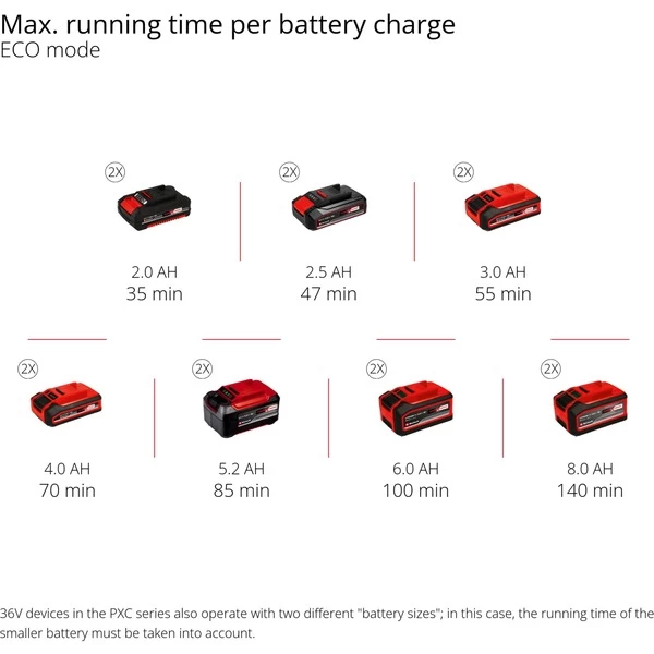 | Hinweis | Alle Lithium-Ionen-Akkus und Ladegeräte der Einhell Power X-Change Familie können für jedes Gerät oder Werkzeug mit der Power-X Change-Technologie benutzt werden. | ||