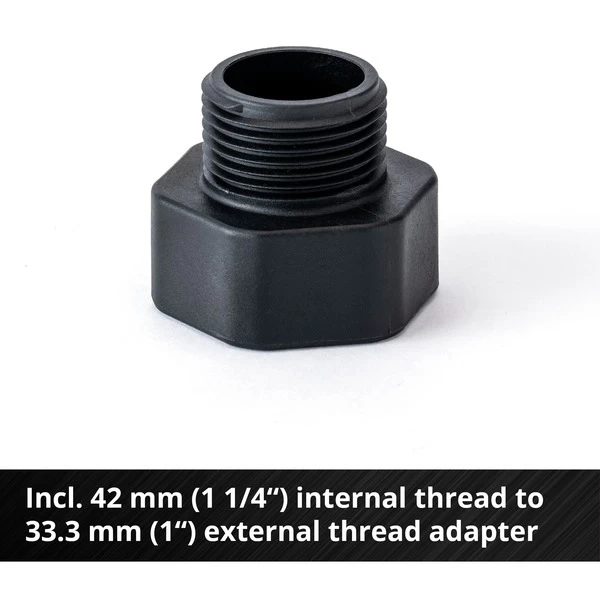 | Anschlüsse | Ansaugleitung | 1.1/4″ (42mm) Außen-Gewinde | |