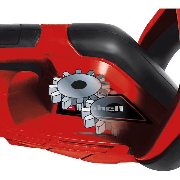 Die Elektro-Heckenschere GH-EH 4245 von Einhell mit einer 420-Watt Leistung und einer Schnittlänge von 450 mm eignet sich ideal zur Pflege von Hecken, Sträuchern und Gebüsch. Die gegenläufigen, beidseitig schneidenden Sicherheitsmesser aus lasergeschnittenem und diamantgeschliffenen Stahl erzielen dabei gute Schnittresultate. Ausgestattet mit einem robusten Metallgetriebe mit hoher Lebensdauer sorgt die GH-EH 4245 für eine effiziente Kraftübertragung. In punkto Sicherheit glänzt die GH-EH 4245 mit einem großflächigen Handschutz und einem Zweihand-Sicherheitsschalter. Die Messer der GH-EH 4245 werden durch eine Messerabdeckung aus Aluminium geschützt und das Zuleitungskabel ist durch eine Zugentlastung vor Beschädigung geschützt. Im stabilen Köcher lässt sich die GH-EH 4245 sicher transportieren.Art.-Nr.: 1132912
