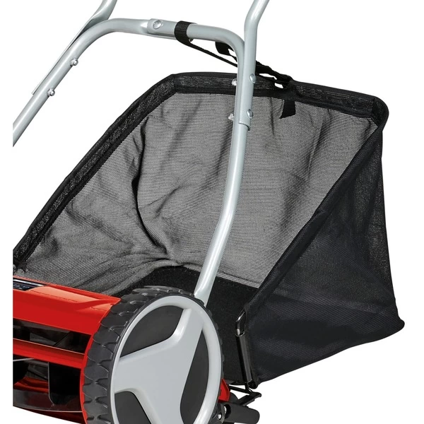 Der Hand-Rasenmäher GC-HM 400 von Einhell ist ein robuster funktionaler Spindelmäher ohne motorischen Antrieb, der sich ideal für kleinere Rasenflächen eignet. Er mäht sauber, leise, absolut umweltfreundlich und unabhängig vom Stromnetz. Das Gerät verfügt über eine leichtgängige, kugelgelagerte Mähspindel mit fünf hochwertigen Stahlmessern und ermöglicht dank vierstufiger Schnitthöhenverstellung eine exakte Einstellung der gewünschten Schnitthöhe. Der GC-HM 400 verfügt über eine robuste langlebige Kunststoff-Laufwalze und ist mit großflächigen, rasenschonenden Rädern ausgestattet. Der abnehmbare Grasfangkorb fasst ca. 27 Liter und lässt sich einfach entleeren. Die Parkposition ermöglicht ein sicheres und platzsparendes Verstauen des Mähers nach der Arbeit. Der GC-HM 400 wird für Rasenflächen bis 250m² empfohlen.Art.-Nr.: 1716371