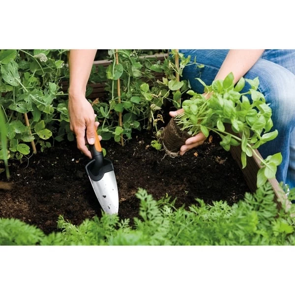 Die Blumenkelle Premium von Fiskars ist ein kompaktes, stabiles Werkzeug, mit dem jeder Gärtner im Nu sein Blumenbeet verschönern kann. Die Blumenkelle Premium kann am besten zum Pflanzen sowie Umpflanzen verwendet werden. Selbst harte Böden machen ihr nichts aus, denn die Schaufel besteht aus robustem und rostfreiem Stahl, sie ist also sehr stabil. Der Griff ist ergonomisch geformt und außerdem sehr leicht. Gefertigt ist dieser aus speziellem Material, welches leicht aber dennoch sehr stabil ist. Darüber hinaus hat er eine rutschfeste, komfortable Oberfläche. Die Fiskars Blumenkelle Premium wiegt insgesamt nur 143 Gramm. Ihre Länge beträgt 28 Zentimeter, die Arbeitsbreite etwa neun Zentimeter. Das Produkt hat am Ende des Griffs ein Aufhängeloch und kann sicher und einfach verstaut werden. Art.-Nr.: 1412451