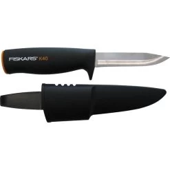 Das Universalmesser K40 von Fiskars ist nicht nur für die Küche da, es findet auch in anderen Bereichen seine Anwendung. Es kann zum Beispiel im Garten aber auch für diverse Outdoor-Aktivitäten, wie zum Beispiel beim Campen oder Wandern, eingesetzt werden. Mit seinem Gewicht von nur 70 Gramm ist es besonders leicht und ermöglicht eine komfortable Handhabung. Mit 22 Zentimetern Länge ist es recht handlich und kann sehr gut zum Ausnehmen von Fisch oder auch zum Schnitzen von Holz benutzt werden. Auch als Gemüsemesser macht es eine gute Figur. Das Universalmesser K40 besitzt einen ergonomischen und rutschfesten Griff aus Kunststoff. Ein spezieller Fingerschutz verhindert ein Abrutschen und bietet zusätzliche Sicherheit. Die langlebige, rostfreie Klinge ist 10 Zentimeter lang und besteht aus hochwertigem Stahl. Ein Köcher mit einer extra Gürtelschlaufe ermöglicht darüber hinaus eine sichere Aufbewahrung dieses Messers. Art.-Nr.: 1410845