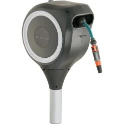 Kein Bücken, kein Kurbeln und keine schmutzigen Hände, das schätzen Gärtner an den GARDENA Schlauchboxen. Darin ist der Schlauch durch die integrierte Schlauchführung immer gleichmäßig aufgerollt und jederzeit schnell einsatzbereit. Die Garten-Schlauchbox RollUp M wird nicht an der Wand, sondern mittels Erdspieß aus Metall im Erdreich befestigt und ist so noch flexibler positionierbar. Die kompakte Box lässt sich um 360° drehen und ist mit 20 Meter Schlauch ausgerüstet. Die Garten-Schlauchbox RollUp M kann sogar dort im Boden befestigt werden, wo ein GARDENA Mähroboter im Einsatz ist, denn er kann unter der Box durchfahren und ungestört seine Runden auf dem Rasen drehen. Mit den kurzen Arretierstopps kann der Schlauch auf die gewünschte Länge ausgezogen werden. Dank RollControl genügt nach Gebrauch ein kurzer Zug am Schlauch und er wird mit gleichmäßiger Geschwindigkeit und sicher automatisch wieder eingerollt. Die Garten-Schlauchbox RollUp M ist frostsicher und kann das ganze Jahr über draußen an ihrem Platz bleiben.Art.-Nr.: 1688199