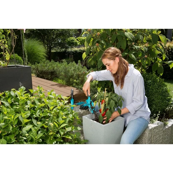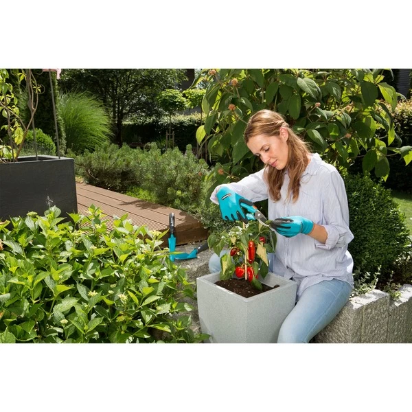 Die GARDENA Grundausstattung Kleingeräte 08965-30 bietet den optimalen Einstieg in die Gartenpflege und in die Welt der GARDENA Handgeräte. Das Set besteht aus einer Blumenkelle, zum An- und Umpflanzen in Blumenkästen und Beeten und einem Unkrautstecher, mit dem man Unkräuter leicht mitsamt der Wurzel aus dem Boden entfernen kann. Der hochwertige Qualitätsstahl und die Duroplast-Beschichtung schützen die Kleingeräte vor Korrosion und machen sie besonders widerstandsfähig. Ergonomisch geformte Griffe, mit abgewinkelten Griffenden, machen die Handhabung besonders angenehm. Weiterer Bestandteil des Sets ist eine Classic Gartenschere, die sich besonders zum Schneiden von Blumen und frischen Trieben eignet. Sie verfügt über eine Saftrille, einen integrierten Drahtschneider und einen Einhand-Sicherheitsverschluss. Die GARDENA Garten- und Bodenhandschuhe (Größe 8/M), die ebenfalls im Set enthalten sind, bieten besonderen Schutz bei Pflanzarbeiten, speziell beim Arbeiten mit feuchten Böden. Die Latexbeschichtung an der Handinnenfläche und den Fingerkuppen gewährleistet dabei trockene und saubere Hände.Art.-Nr.: 1308231