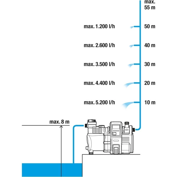 Mit dem GARDENA Hauswasserautomat Premium 6000/6 LCD Inox spart man Geld und schont die Umwelt, indem man kostenloses Regen- oder Brunnenwasser zur Bewässerung des Gartens nutzt oder es verwendet um im Haus die Toilette oder Waschmaschine zu betreiben. Die integrierte Elektronik aktiviert den robusten Hauswasserautomaten vollautomatisch bei Wasserbedarf und schaltet ihn danach wieder aus. Der kompakte GARDENA Hauswasserautomat Premium 6000/6 LCD eignet sich hervorragend für den mobilen und stationären Einsatz – egal wo man ihn benötigt. Die Bedienung ist einfach, störungsfrei und komfortabel. Der Hauswasserautomat lässt sich per Knopfdruck in Betrieb nehmen und durch einfache Bedienung lassen sich zahlreiche Funktionen nutzen. Grund für die schnelle, problemlose Inbetriebnahme: Durch die neuartige integrierte Rückschlagventil-Technik ist ein schnelles Ansaugen möglich. Und es gibt noch eine komfortable Leistung: Das neuartige, eingebaute Kleinmengen-Programm sichert auch bei geringen Fördermengen eine problemlose Anwendung, z. B. bei modernen Waschmaschinen oder Tropfbewässerungsanlagen. Durch das neuartige Multi-Control LC-Display hat man die volle Kontrolle aller Pumpenfunktionen. Diverse Betriebs- und Sicherheitsanzeigen sind direkt am Automaten ablesbar. Zudem erhält man ausführliche Text-Informationen zu evtl. Störungen und deren Abhilfe durch das neue Fehlerdiagnosesystem. Intuitive Menüführung und diverse Einstellmöglichkeiten, angepasst an die speziellen Bedürfnisse, machen die Bedienung des Hauswasserautomaten einfach und geben absolute Sicherheit. Eine Trockenlaufsicherung verhindert zudem die Beschädigung des Gerätes bei ausbleibendem Fördermedium. Für die einfache Handhabung erleichtert eine große Einfüllöffnung das Befüllen der Pumpe vor der Inbetriebnahme. Das 5-stufige Laufrad ermöglicht sehr leisen Betrieb. Stellfüße aus Gummi sorgen für einen festen Stand und einen vibrationsarmen, geräuschdämpfenden Betrieb.Art.-Nr.: 1213461