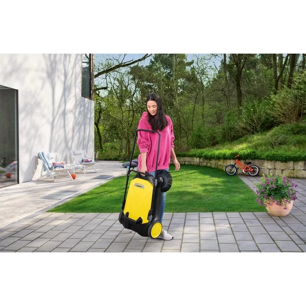 Die Kärcher Kehrmaschine S 4 eignet sich zur Reinigung von Gehwegen, Straßen, Hof- und Garageneinfahrten und Flächen rund ums Haus. Der Griff kann bei Bedarf vollständig eingeklappt werden, so kann die Maschine senkrecht platzsparend gelagert werden. Mit der kräftigen effizienten Kehrwalze und dem Seitenbesen bietet sie eine Arbeitsbreite von 51cm. Der Kehrbehälter der S 4 lässt sich leicht entnehmen und ist so konstruiert, dass er sicher abgestellt werden kann.Art.-Nr.: 1607621